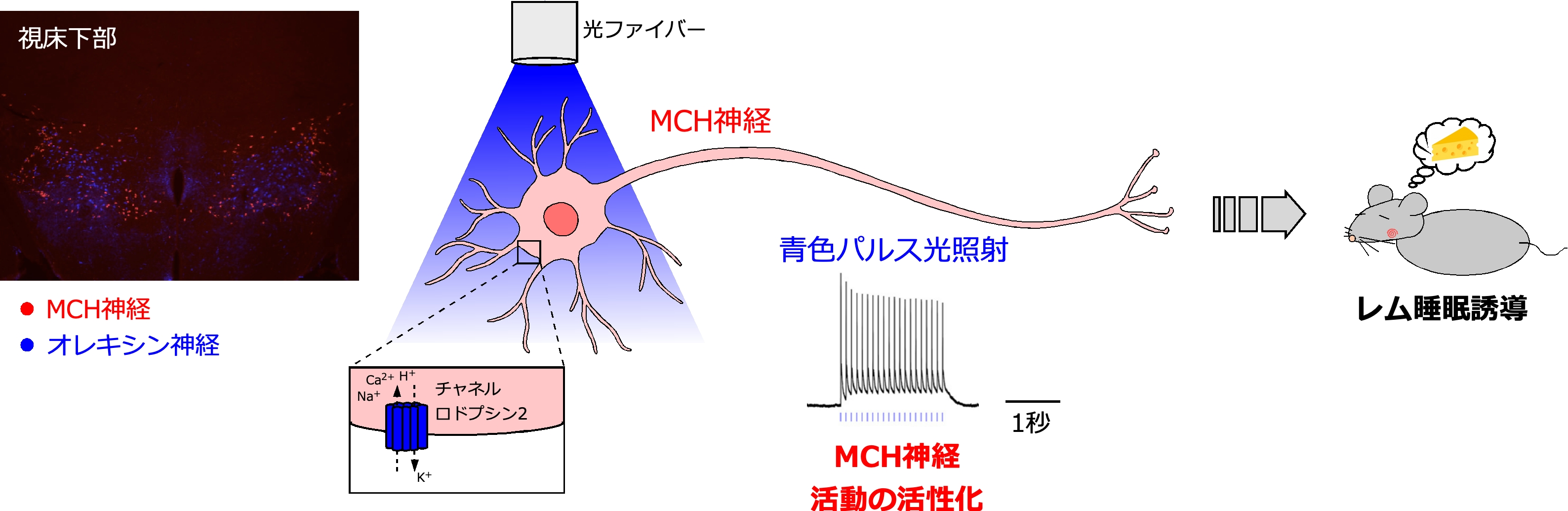 光遺伝学的手法によるメラニン凝集ホルモン神経の活性化はレム睡眠を惹起する