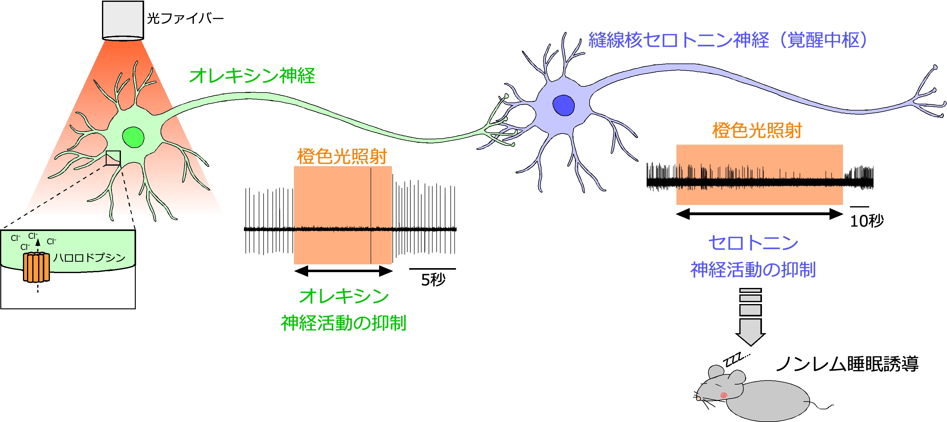 光遺伝学的手法によるオレキシン神経の抑制はノンレム睡眠を惹起する